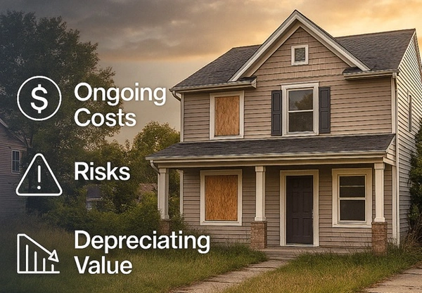 Even when no one lives in a home, the bills don’t stop. Property taxes, homeowners insurance, utilities, and yard upkeep can easily total hundreds or even thousands of dollars a month. Vacant homes often require vacant-property insurance, which costs significantly more because insurers see them as higher risk.Then there are the small but unavoidable costs such as trash removal, snow shoveling, HOA fees, and basic maintenance to prevent plumbing or HVAC issues. Add in the stress of checking on the property or hiring someone else to do it, and holding becomes far more expensive than it looks on paper.