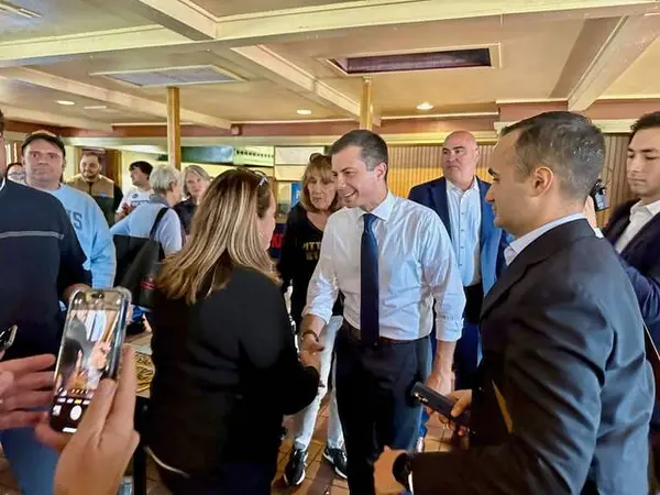 U.S. Secretary of Transportation Pete Buttigieg made an appearance Friday afternoon at a canvass kickoff for Kamala Harris and local Democrats — Rep. Mandy Steele and U.S. Rep. Chris Deluzio — in Cheswick.