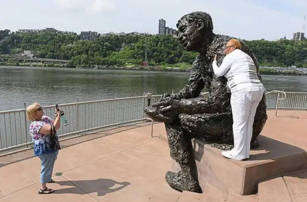 At the end of the video, he says, “See you Saturday, neighbor,” referring to Pitt’s game against California at Acrisure Stadium, which sits across the street from the bronze statue of the real Mr. Rogers.