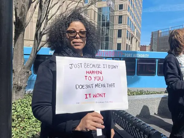 Snell, 41, of Bridgeville, joined dozens of federal workers for a 30-minute rally in Downtown Pittsburgh Wednesday in support of union rights.