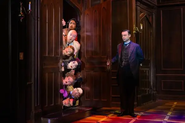 Director Casey Hushion’s blocking — especially during scenes where things are in “slow motion” or “rewind” — is both funny and functional. The set is flashy and movable, with sumptuous chandeliers and simple but elegant furniture pieces, thanks to set designer Lee Savage. Each of the costumes, from sharp suits to Miss Scarlet’s red gown to Yvette’s French maid ensemble, were perfect for the setting and stood out, designed by Jen Caprio.