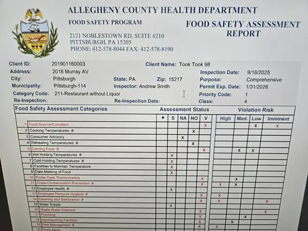 An Allegheny County Health Department inspector shut down a Thai street food restaurant in Pittsburgh’s Squirrel Hill neighborhood after finding its kitchen was overwhelmingly contaminated by rodent droppings.
