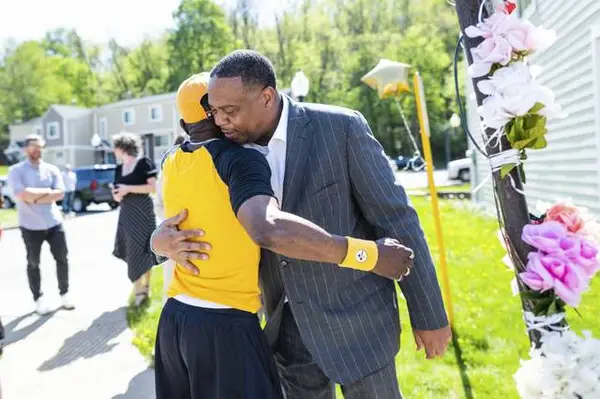 “It’s all about the safety of our children,” Gainey said after throwing a football with local kids who watched the construction. “This project will make it more safe. We don’t ever want to lose a child again.”