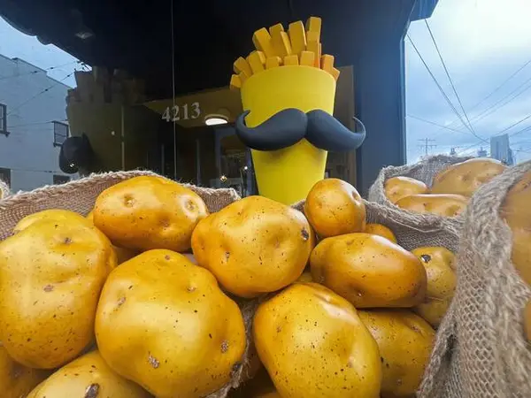 But a visit to the storefront last week found ongoing renovations and storefront signage that include plenty of colorful bags of faux potatoes amid a large, oversized yellow fry cup adorned with a whimsical black mustache.