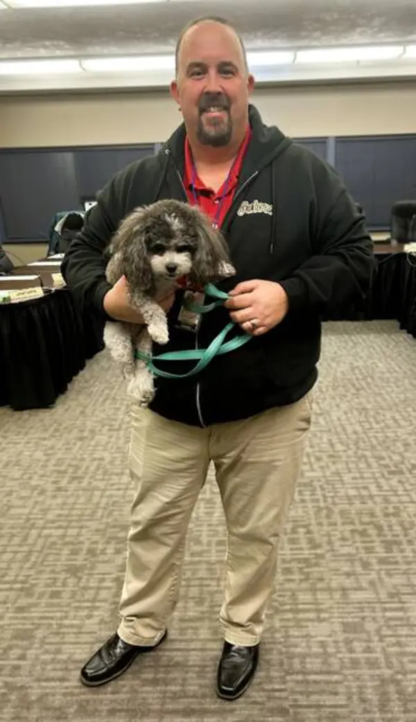 Director John Ritter asked about students who may have an allergy or aversion to dogs. Taylor said Kyla she can be put in her crate, or he can use the extra room adjacent to his office.