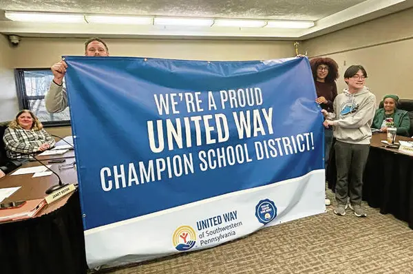 Individual Donor Development Officer Kevin Platz, with the United Way of Southwestern Pennsylvania, presented Gateway with a large banner that reads, “We’re a Proud United Way Champion School District.”