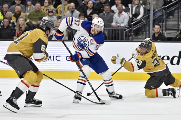 Edmonton wasn’t deterred by committing the first penalty game. After Vincent Desharnais’ poke check forced a turnover to spring a 2-on-0 rush, McDavid took a pass from Draisaitl and beat Hill to give the Oilers a 1-0 lead with a short-handed goal.