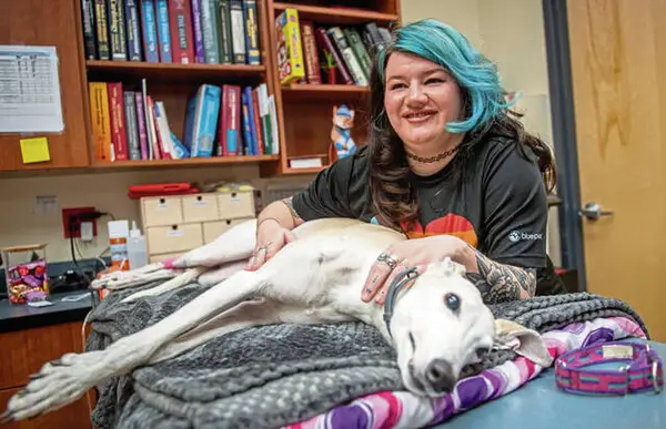 But on Feb. 15 at BluePearl Pet Hospital in Ohio Township, Ashleah Stone wasn’t worried at all about her 7-year-old greyhound, J.B.