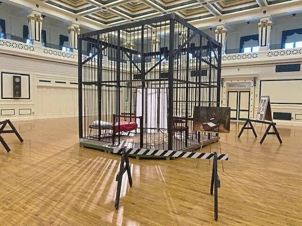 Fans of the 1991 thriller film “Silence of the Lambs” may know that one of the film’s most memorable scenes was shot at Soldiers and Sailors Memorial Hall in Oakland. On Friday, there’s an opportunity to get up close and personal with Hannibal Lecter with a recreation of the iconic cage — and the original rug and bedframe from the film.