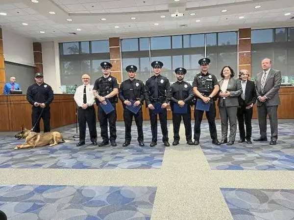 Five Penn Hills police officers raised their right hands for a swearing-in ceremony at the July 17 council meeting — and another raised its paw.