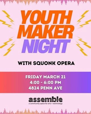 Welcome to Youth Maker Night with Squonk! Join us at Assemble for a night filled with creativity and innovation. Come make some noise with us!