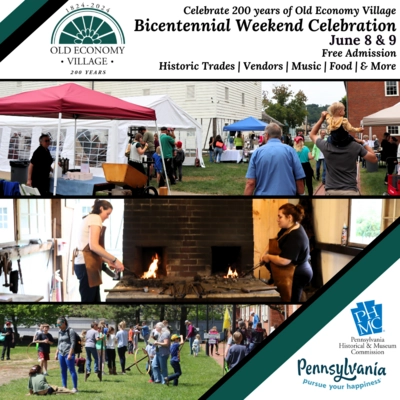Come and celebrate 200 years of Old Economy Village during the Bicentennial Weekend Celebration on June 8th and 9th.