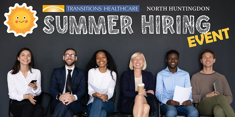 Start your summer with a new career! Join us on Wednesday, May 28th for our Summer Hiring Event at Transitions Healthcare North Huntingdon!