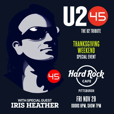 Hard Rock Cafe and CE Presents welcome U245 - The U2 Tribute with special guest Iris Heather on Friday, November 29, 2024!