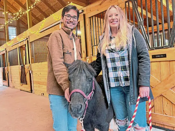 The stay is unique in that it offers one-on-one interactions with a friendly mini-pony named Domino, owned by newlyweds Kat and Michael Ray.