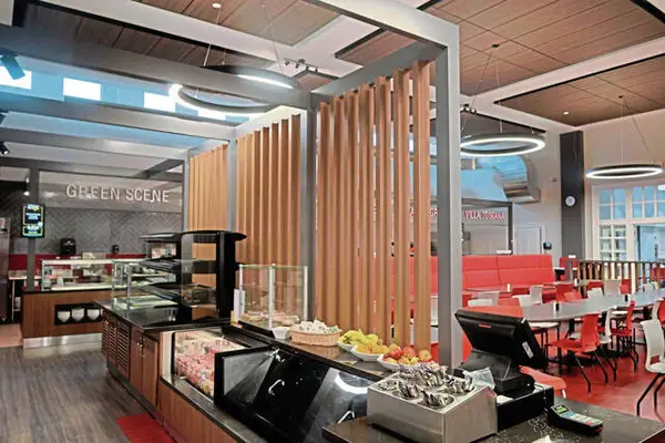 The project completely transformed the dining space, placing a strong emphasis on nutrition and sustainability. Updates include a fresh, expanded menu, sustainable tableware, modernized kitchen equipment, new lighting and a redesigned layout that enhances flow and function.