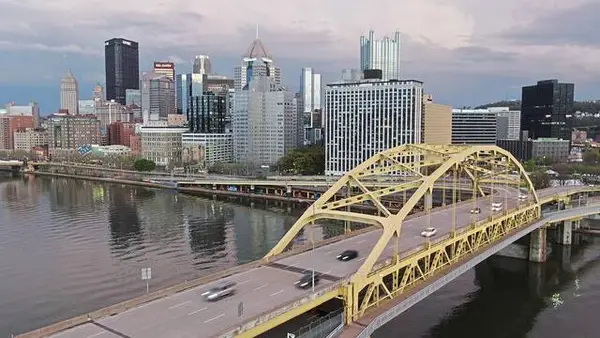Inbound (eastbound) I-376 Parkway West to the Fort Duquesne Bridge