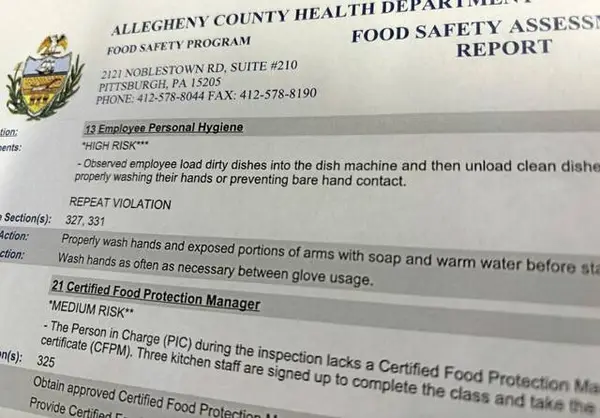 In February, managers at the restaurant met with the department and agreed that three employees would register to take a certified food protection management course and that other employees would be trained to use proper personal hygeine and proper food handling practices.