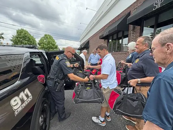 The 21-member service club presented 20 comfort bags to McCandless police Chief Ryan Hawk and Lt. Eric Egli on July 29 at Walnut Grill in Pine, where the club meets every Tuesday for lunch.