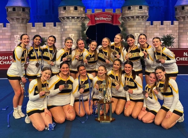 The TJ Small Varsity Cheer Team placed third to earn the Bronze Medal in the largest division, Small Varsity Div. II, which included 81 teams from across the nation. The Jaguars performed their routine in the preliminaries and advanced to two rounds of semifinals before becoming among just 13 teams to advance to the finals.