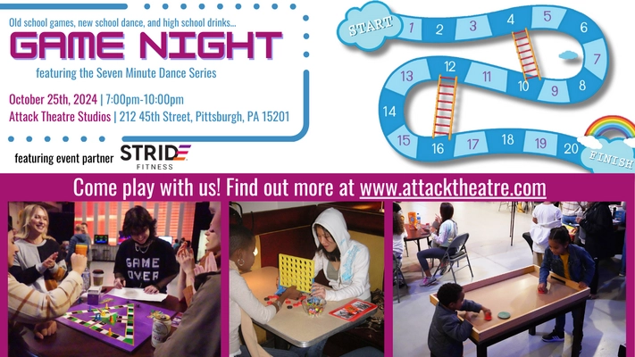 Well-known as “the best place to play a rousing game of Four-Square with a professional dance company” by Pittsburgh City Paper, Game Night is back THIS FRIDAY 10/25 from 7pm to 10pm, just in time for