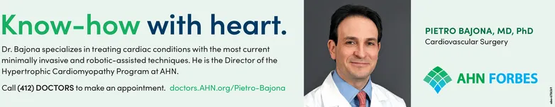 Know-how with heart. PIETRO BAJONA, MD, PhD Cardiovascular Surgery Dr. Bajona specializes in treating cardiac conditions with the most current minimally invasive and robotic-assisted techniques. He is the Director of the Hypertrophic Cardiomyopathy Program at AHN. AHN FORBES Call (412) DOCTORS to make an appointment. doctors.AHN.org/Pietro-Bajona Know-how with heart. PIETRO BAJONA, MD, PhD Cardiovascular Surgery Dr. Bajona specializes in treating cardiac conditions with the most current minimally invasive and robotic-assisted techniques. He is the Director of the Hypertrophic Cardiomyopathy Program at AHN. AHN FORBES Call (412) DOCTORS to make an appointment. doctors.AHN.org/Pietro-Bajona