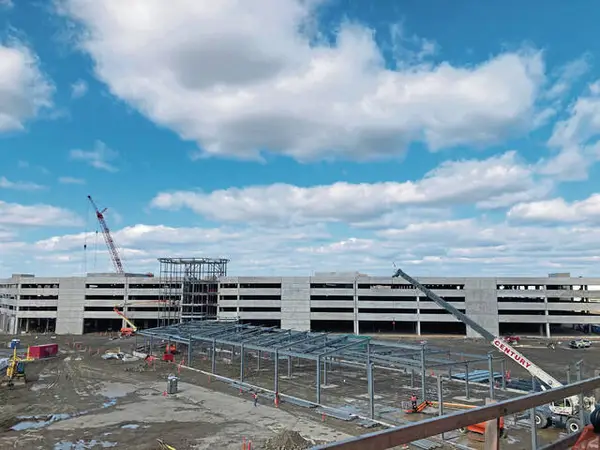 The $200 million garage is part of a $1.5 billion modernization project that will expand security screenings, expedite transport around the airport, and push a new landside terminal directly up against an airside terminal, eliminating the need for the existing underground people mover train. The project is primarily funded through fees negotiated with the airlines, as well as partially from federal money from the Bipartisan Infrastructure Law.