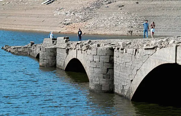 “We’ve never walked down here before. We’ve just seen it going across the (modern) bridge. I’ve never seen the water this low.”