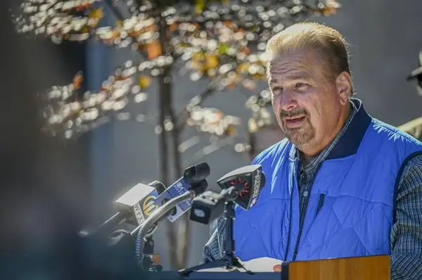 The noon observance was planned late Thursday after an entry in Mt. Pleasant’s Halloween parade this week depicted political violence. Organized by Westmoreland County Democrats and Mt. Pleasant Borough officials, the rally was held in Courthouse Square on Main Street in downtown Greensburg.