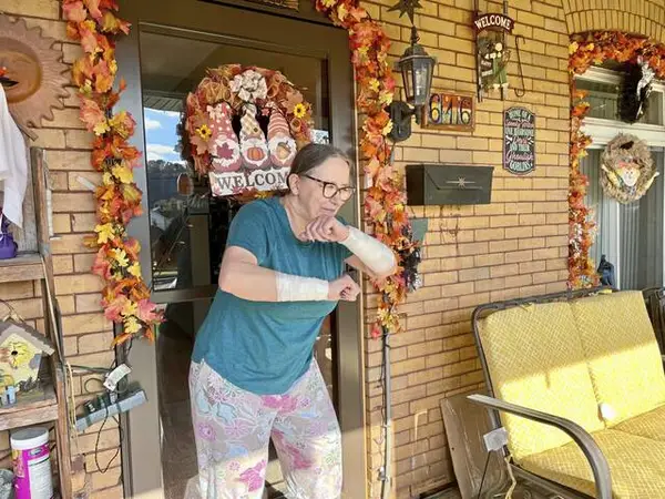 Valasek was in good spirits Saturday but still nursing puncture wounds to both forearms. She is getting rabies shots because the dogs were not vaccinated, she said.