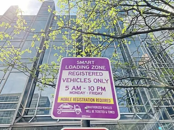 Marked by purple curbs and matching signage, smart loading zones are areas where a graduated payment system encourages drivers to get in and out of parking spots quickly, freeing them up for the next driver.