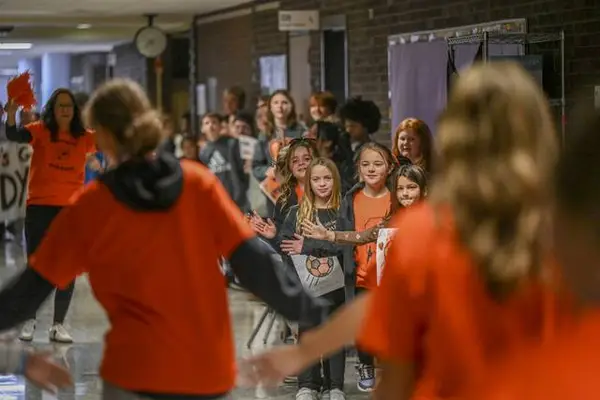 Sisters Addison, 11, and Rikki Haas, 12, also watched with pride as older sisters Bailiegh and Makenna walked through the halls of Acmetonia with the team.