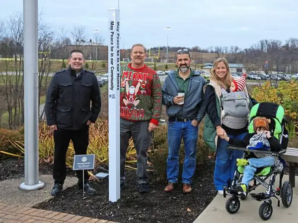 Brought to the center by the Rich-Mar Rotary Club, the pole serves as “a powerful symbol of hope, unity and the shared goal of peace that transcends borders, cultures and beliefs,” according to Seth Prentice, the club’s president-elect.