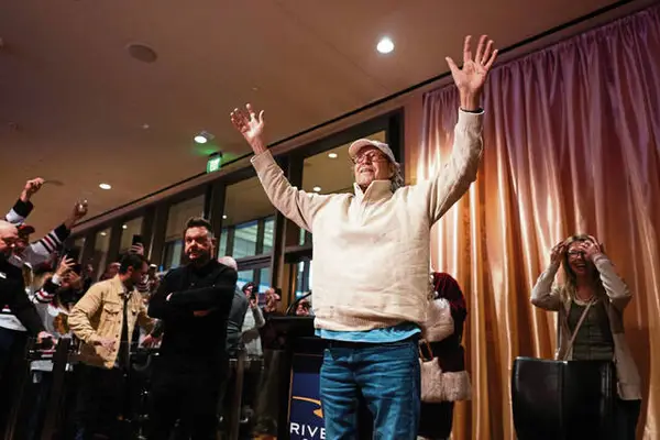 Actor Chevy Chase, who played Clark Griswold in “National Lampoon’s Christmas Vacation,” and other movies in the “Vacation” franchise, plugged in the tree. But not before he declared “Drum roll, please!” just as Griswold did in the movie.