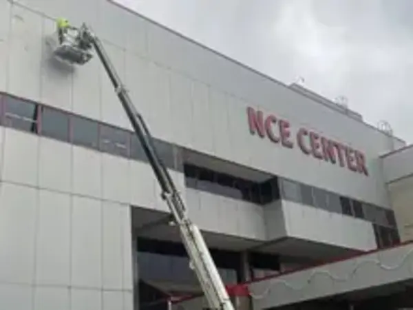 “Currently, the part of the facade needs repaired,” said Ned Schano, senior director of marketing for the science center. “It just happens to be where one of the building signs is located.”