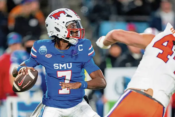 In the Mustangs’ league title game loss to Clemson, he ran for 35 and a score.