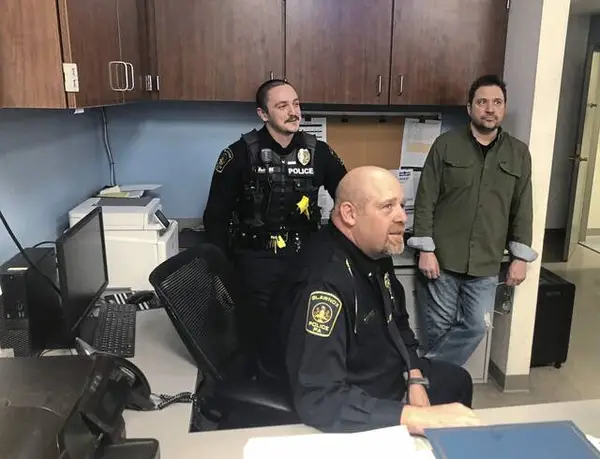 Blawnox police Chief Patrick Goodman sat at the main desk of the police station talking with his fellow officers on the first floor of the borough building.