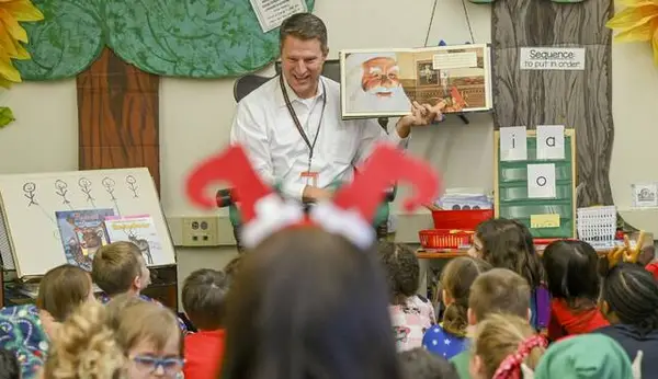 Allegheny Valley School District Superintendent Patrick Graczyk read a classic story, “The Night Before Christmas,” to kindergarten students at Acmetonia Elementary School in Harmar on Thursday.