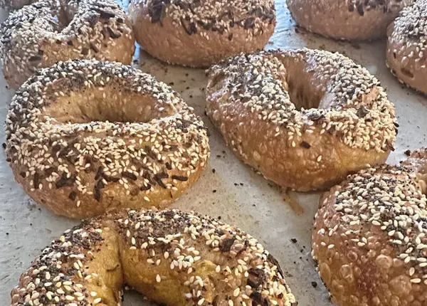 Each bagel is made with all-natural unbleached, unbromated flour and ferments for 48 hours. Everything is made fresh daily.