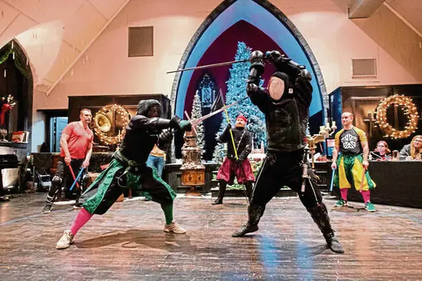 Each participant carries a 48- to 52-inch saber into the former Holy Family Roman Catholic Church in East Deer for Friday Night Fights where, two by two, they enter a ring wearing gear representative of medieval times.