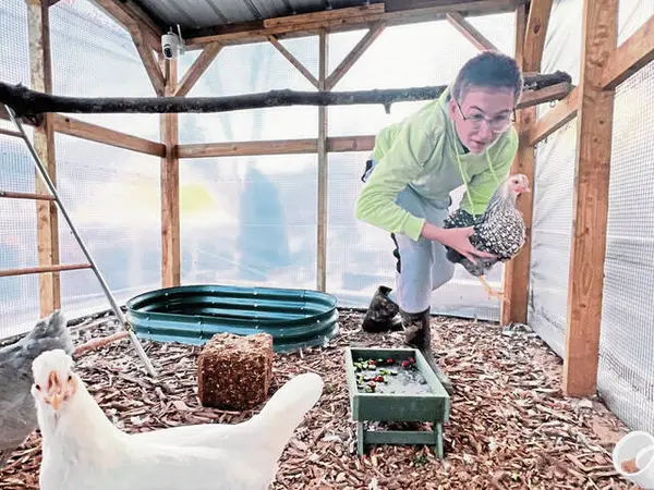 Gus assists with chicken-keeping daily duties and said he is happy having feathered friends as pets.