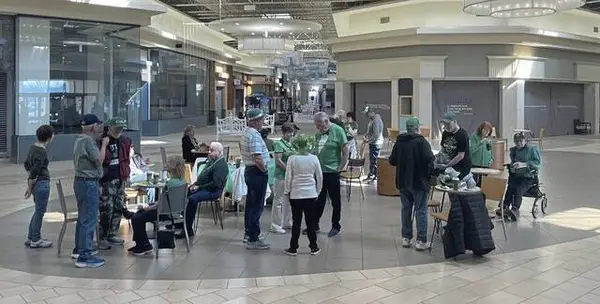 And the group also knows how to party. On Thursday, a group of about 25 gathered in the Mills mall, outside Panera Bread, for a St. Patrick’s Day celebration in addition to their daily walks through the mall.