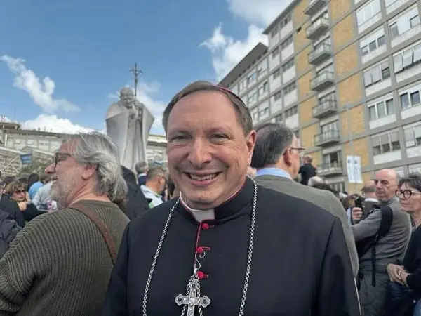 Bishop Larry J. Kulick of the Diocese of Greensburg was among a crowd of hundreds that gathered Sunday outside Gemelli Hospital in Rome for Pope Francis’ first appearance since he was hospitalized on Feb. 14 for life-threatening double pneumonia.