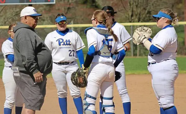 Pitt-Greensburg softball coach Chuck Myers reached a milestone when the Bobcats defeated Chatham in the first game of a doubleheader.