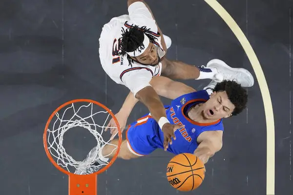 The All-America guard for the Gators (35-4) had a driving layup with 2 minutes, 24 seconds left. That came on the possession right after Australian big man Alex Condon drew a charge against Johni Broome, the other All-America player in this national semifinal — and who was dealing with an injured right elbow.