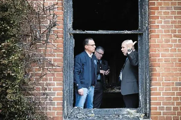 Shapiro said he, his wife, their four children, two dogs and another family had celebrated the Jewish holiday of Passover at the residence on Saturday and were awakened by state troopers pounding on their doors at about 2 a.m. Sunday. They fled and firefighters extinguished the fire, officials said. No one was injured.