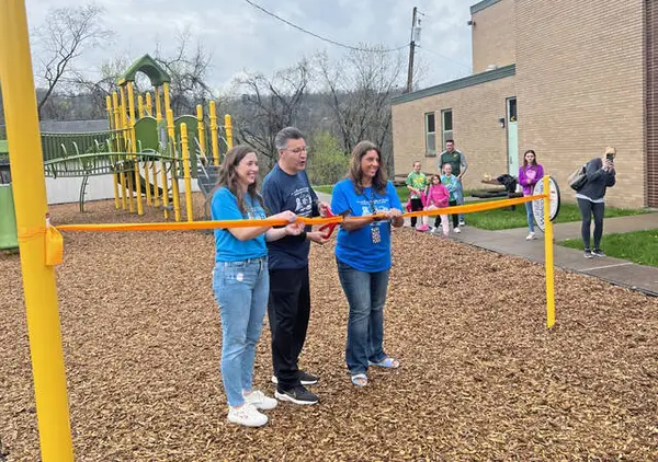 The playground was installed in November, said Principal Amy Horvat. District officials, students and parents flocked to the playground April 5 to celebrate its completion and recognize donors.