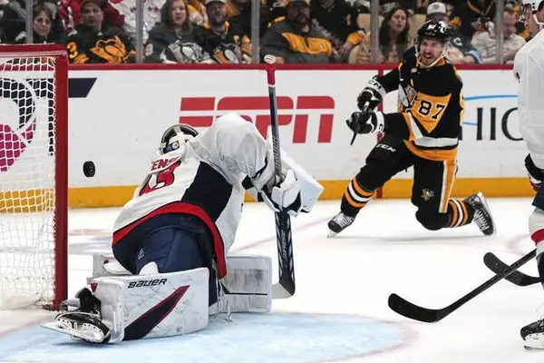Claiming a loose puck on Washington’s left half-wall, Penguins forward Philip Tomasino maneuvered toward the cage on something of a two-on-one advance with Crosby against Capitals defenseman Jakob Chychrun. Tomasino made the logical choice to feed the puck to the lower right circle where Crosby pumped a one-timer by the glove of a sprawling Stevenson. Tomasino and forward Connor Dewar were deemed worthy of assists.