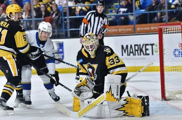 In his first game of the season at the American Hockey League level, goaltender Taylor Gauthier made 32 saves for the Wilkes-Barre/Scranton in their regular season finale, a 3-0 win against the Cleveland Monsters at Mohegan Sun Arena in Wilkes-Barre on Saturday.