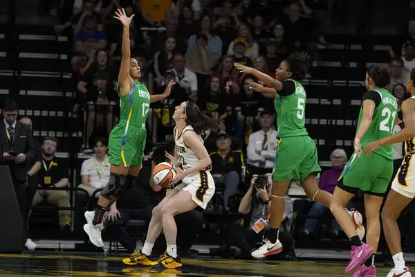 Clark’s day was bookended by shots that were reminiscent of her career with Iowa’s women’s basketball team: her first 3-pointer came from the tip of the beak on Iowa’s “Tigerhawk” logo at midcourt 34 seconds into the game.